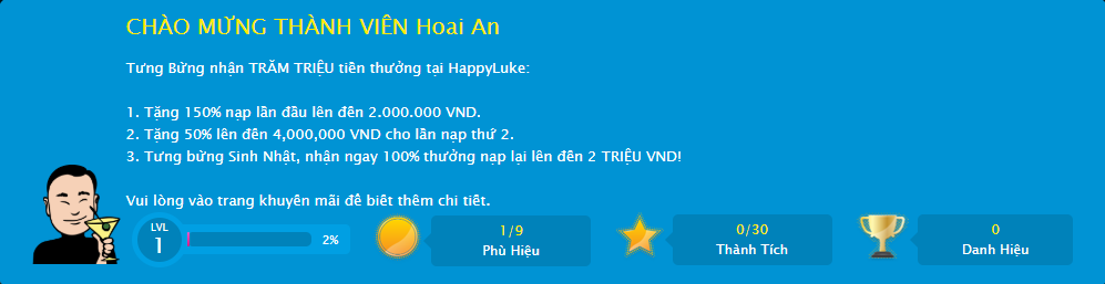 • Thưởng 60k không cần gửi tiền + gửi tiền 300% và 100 vòng quay miễn phí happyluke