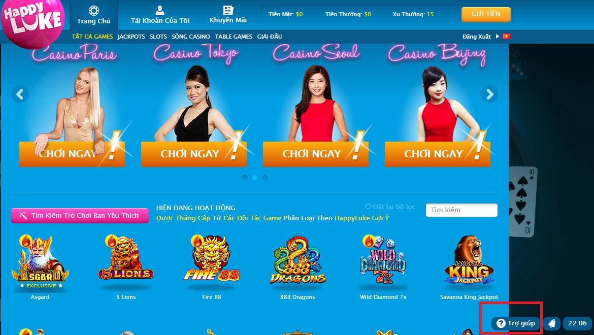 Anh em vào trang web Happyluke rồi kích vào nút màu cam Gửi tiền