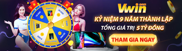 Kỷ niệm 9 năm thành lập nhà cái Vwin trao tặng cho anh em cá độ vòng quay may mắn tổng giá trị lên tới 5 tỷ đồng với rất nhiều giải thưởng tiền khủng mà anh em không thể bỏ qua.